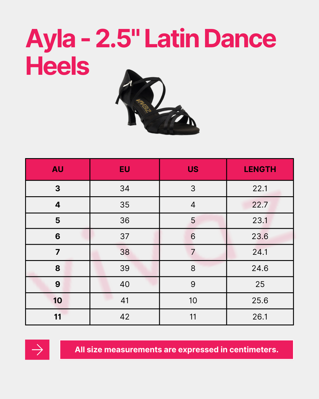 Ayla is made in EU sizing and is true to size, designed for a firm, snug fit—just as dance shoes should be. If you prefer a tighter fit, consider ordering your usual size or one size down.