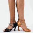 Ayla is the go to black Latin heel for dancers who want a sleek, versatile look that pairs with everything. The soft multi strap design, flexible forefoot and supportive fit make her ideal for Salsa, Bachata, Rumba, Cha Cha and Latin Ballroom technique. She feels secure, comfortable and ready for long practice sessions.
